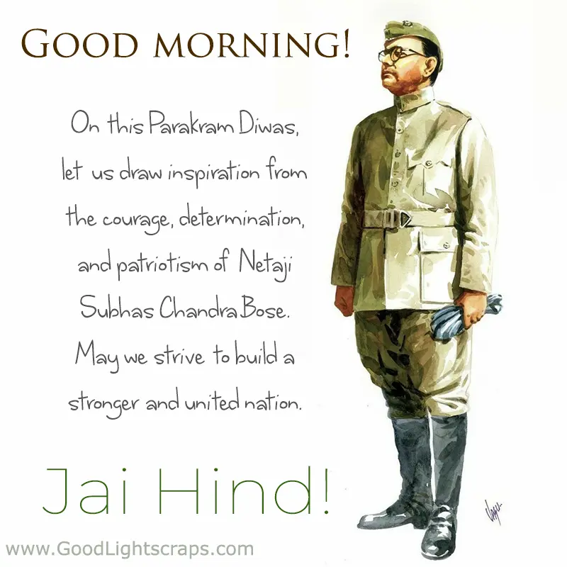 Rise and shine! In Parakram Diwas, we honor the indomitable spirit of Netaji, who taught us to fight for our dreams and our nation. Let's celebrate his legacy with pride and passion. Happy Birthday to the true leader of our nation. Then