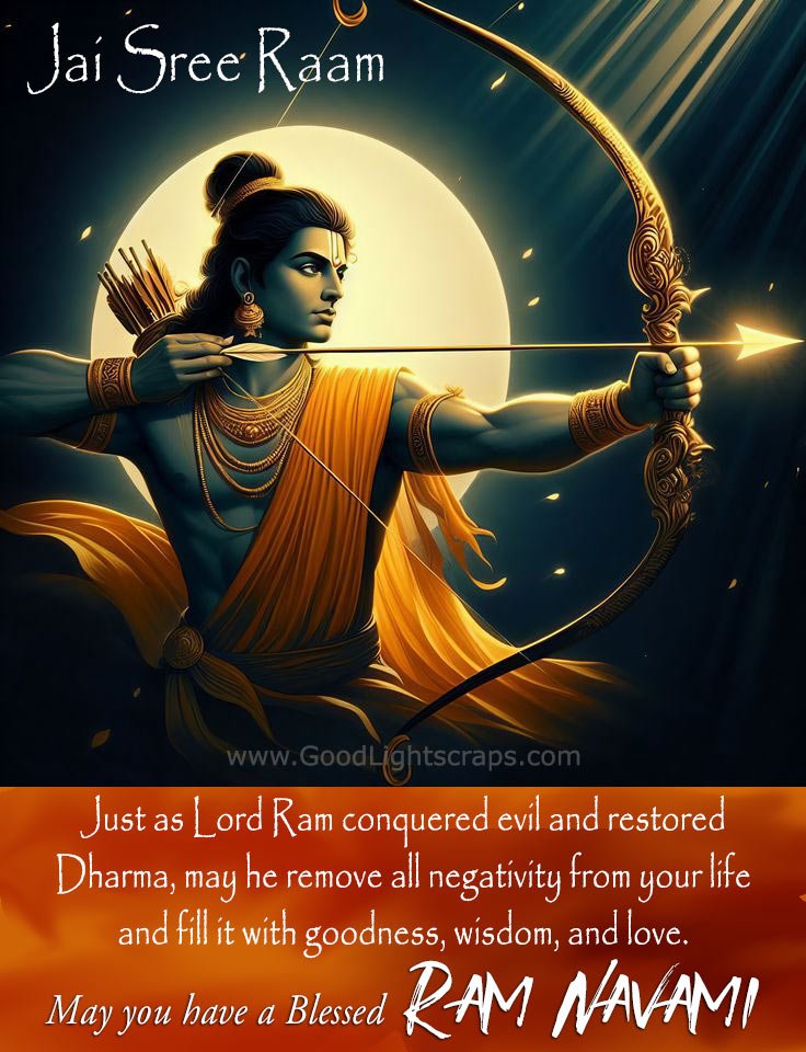 Just as Lord Ram conquered evil and restored Dharma, may he remove all negativity from your life and fill it with goodness, wisdom, and love. May you have a Blessed Ram Navami! Then