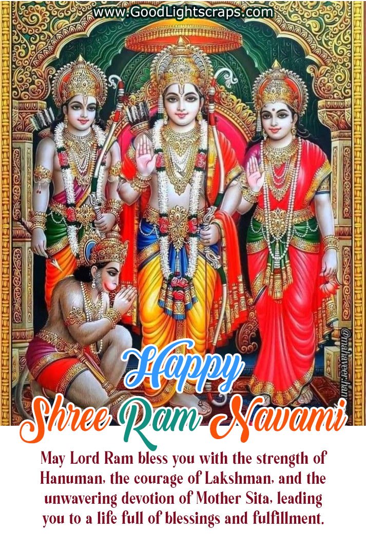 May Lord Ram bless you with the strength of Hanuman, the courage of Lakshman, and the unwavering devotion of Mother Sita, leading you to a life full of blessings and fulfillment. Happy Shree Ram Navami! Then