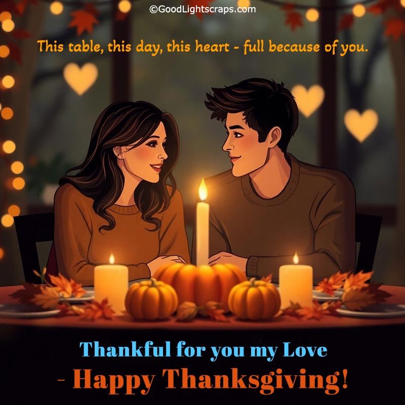 Heartfelt Thanksgiving to My Love Wishes, Greeting Cards with Messages, Images with Quotes for Your love and Romantic Partner.
